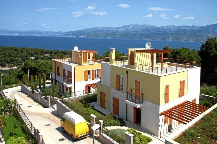 Auf dem höchsten Punkt von Splitska entsteht auf einem Hanggrundstück mit traumhaften Blick über das dalmatinische Meer einen Villenanlage in zeitgemäßer mediterraner Architektur. Die Villen sind hochwertig ausgestattet - jedes Haus verfügt über einen eigenen Pool - und die Qualität der Ausführung orientiert sich an deutschen Normen. Ein Projekt für Käufer mit Qualitätsanspruch und Sicherheitsbedürfnis. Auch die Innenausstattung zeigt ein hohes Niveau: Kunststofffenster, mediterraner Steinbelag und offener Kamin im Wohnbereich, Schlafräume mit Parkett und sep. Bädern mit Fußbodenheizung, moderne Badarmaturen und hochwertige Kücheneinbauten, Klimageräte in den Wohnräumen, große Dachterrassen und eine archtektonisch aufwändige Fassade. Für die Zeit, in der Sie nicht vor Ort sein können wird Ihnen eine Objektbetreuung angeboten.