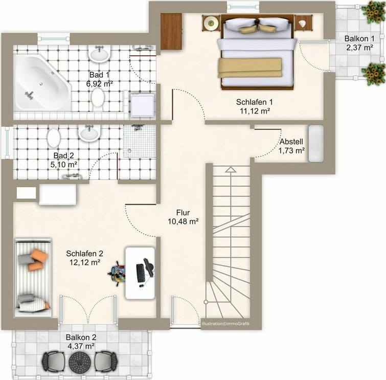 - 2 bis 3 Schlafzimmer pro Wohnung mit separaten hochwertigen Bädern