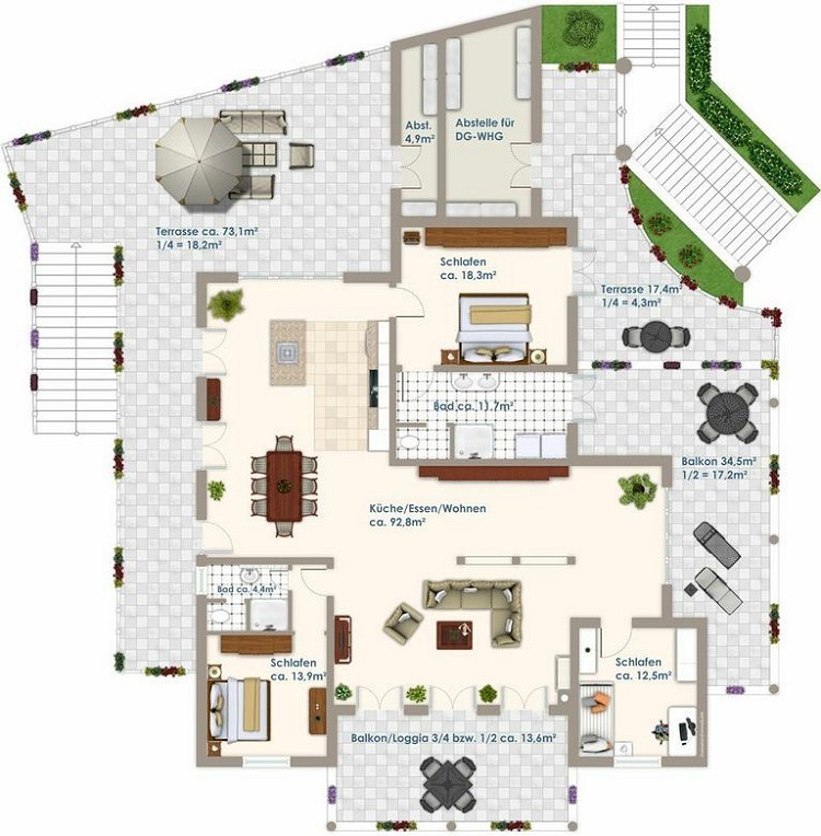 Auch die Ausstattungen lassen keine Wünsche offen - luxuriöse Sanitärobjekte, hochwertige Fliesen, edle Hölzer für Böden und Türen, neuzeitliche Heizsysteme - dem anspruchsvollem Käufer wird jeder Komfort geboten.